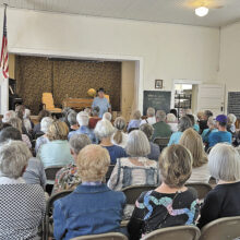 Carol Michels The Women of Quail Creek’s (TWOQC) Small Group On-The-Go experience on the beautiful afternoon of Nov. 15 was, quite literally, historic! Twelve members of the group ventured out to the Tubac Presidio to sit in a rustic schoolhouse and listen to Jack Lasseter’s “Jack Talk” about the inspirational topic of the Navajo Code…