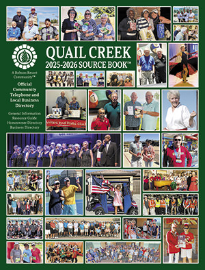 The Quail Creek Source Book is free for all residents, thanks to the businesses that advertise. Don’t forget to also check out the new Community Map and the advertisers that make that possible. Support the business that help support your community.