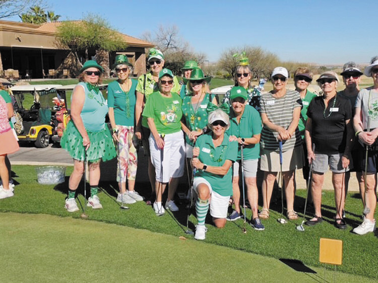 April 2026, Clubs & Classes Sláinte! Everyone Is Irish on St. Patrick’s Day April 16, 2026 Photo by Sylvia Butler Peggy McGee The Lady Putters donned various shades of green as they putted for St Patrick’s Day.