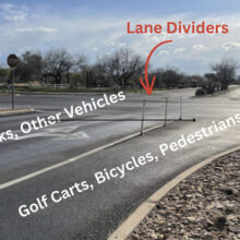 To prioritize the safety of all road users, sturdy white poles have been installed at the intersection of Quail Crossing Blvd and Quail View Loop. These poles act as a clear barrier, effectively separating the multipurpose lane—designated for golf carts, bicycles, and pedestrians—from the vehicle lane. Drivers should not enter to the right of the…