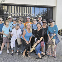 Linn Myrick Let’s Travel Club members enjoyed a beautiful Veterans Day by taking a private, guided, two-mile walking tour of El Presidio and Downtown Tucson. Scott Darlage, owner and tour guide of Strolls and Stories Tours, offers this tour. We began with a discussion of Tucson’s founding in 1775 as a walled Spanish Colonial Presidio…