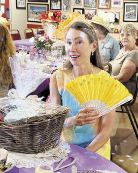 ← Terry Simon, Caring Hearts and Hands member, wins best hat.
